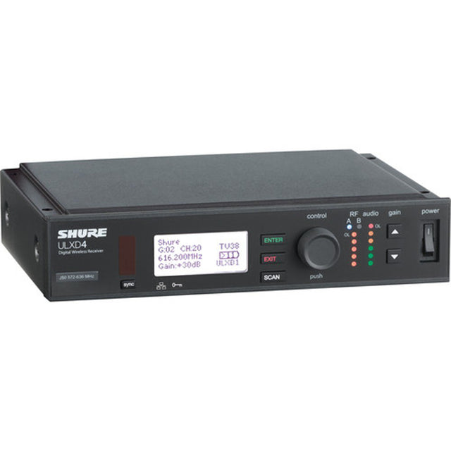 The ULXD4-V50 is compatible with a range of Shure ULX-D transmitters, including handheld and bodypack options, allowing for flexible configurations tailored to specific application needs. Its advanced features and robust performance make it an ideal choice for live performances, corporate events, and broadcast applications where high-quality, secure, and reliable wireless audio is essential.