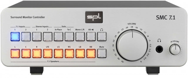 The SPL Surround Monitor Controller SMC 7.1 is an analog studio monitor controller for 7.1 and stereo sources