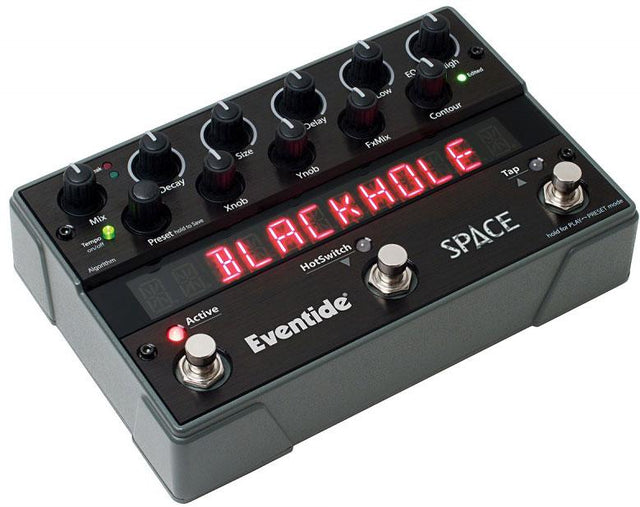 Let's talk about Reverb! All kinds of reverb! Quality reverbs that raise the bar for stage and studio. Halls, Rooms, Plates from the Eventide flagship rack processors. Speaking of Space... you can really go there, BlackHole reverb with Gravity and Anti-Gravity! And, back here on Earth, this pedal will handle all of your natural (Spring), unnatural (Reverse) and supernatural (ModEchoVerb) needs. Add DualVerb, MangleVerb and DynaVerb from the venerable Eventide Eclipse and Space has got you covered. FunFact: The dedicated HotSwitch allows for instant parameter change with the press of a button.