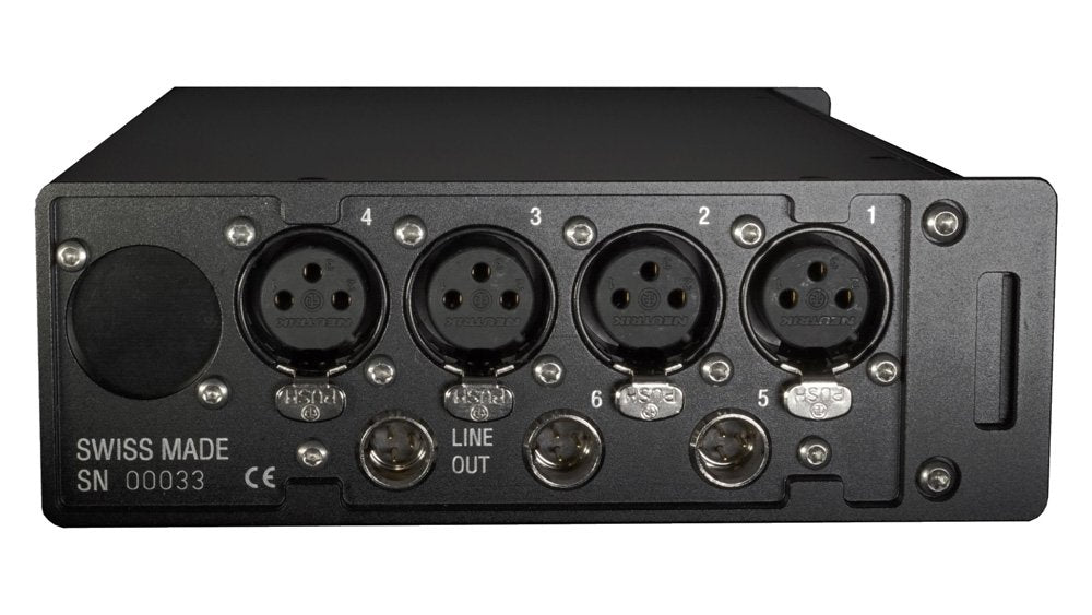 • 2x Line inputs, electronically balanced on TA-3 with level control on the front panel 4x AES3 balanced inputs on multi-pin connector 1x AES3 balanced input with ASRC on TA-3 connector (shared with AES3 output) 2x analog unbalanced line outputs on TA-3 1x AES3 balanced output (user independent sampling frequency) on TA-3 connector (shared with AES3 input) Up to 12x Mic inputs when connected to the SONOSAX AD8+ Optional audio over IP on RJ45 connector, such as AVB and Dante (Not Included)