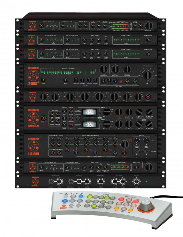 Studio bundle with Dangerous Music's Convert-AD+, Convert-2, Convert-8, BAX EQ, Compressor, Liaison, 2-BUS+, and Monitor-ST
