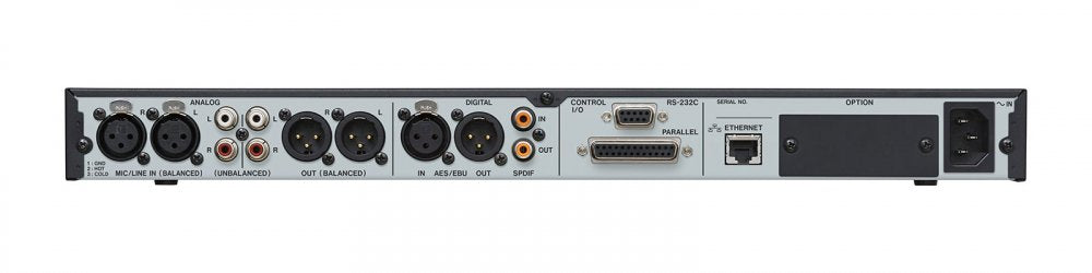 XLR and RCA analog I/O as well as AES/EBU and S/PDIF digital inputs/outputs