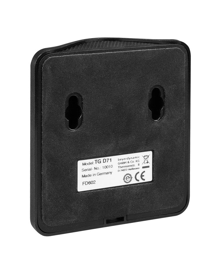 The TG D71 boundary microphone is primarily used for miking bass drums while placing it simply without any additional mounting material into the bass drum. The non-slip rubber bottom makes sure that the microphone cannot shift by itself. In addition to this the TG D71 can also be used for other low frequency instruments such as cajon, grand piano or upright piano whereas the compact design and the half-cardioid polar pattern ensure easy positioning of the microphone. Due to its high impulse fidelity, a low attack time and a maximum sound pressure level of 148 dB, the TG D71 is suitable for miking percussion instruments.