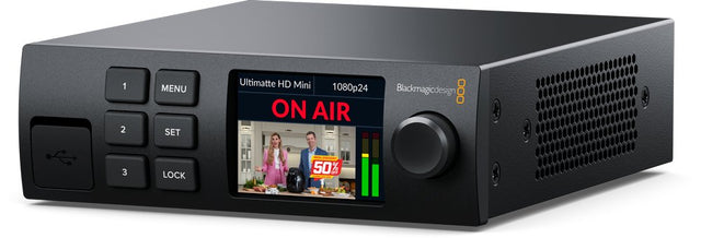 Ultimatte 12 HD Mini is an advanced real time keyer designed for creating next generation virtual sets and more with consumer cameras. The HDMI connections are perfect for use with Blackmagic Studio Cameras, Pocket Cinema Cameras and ATEM Mini live production switchers. Plus there's a massive 6 GB frame store for realistic fixed camera virtual sets from pre rendered still frames. Ultimatte 12 HD Mini features broadcast quality algorithms and color science to deliver photorealistic composites.