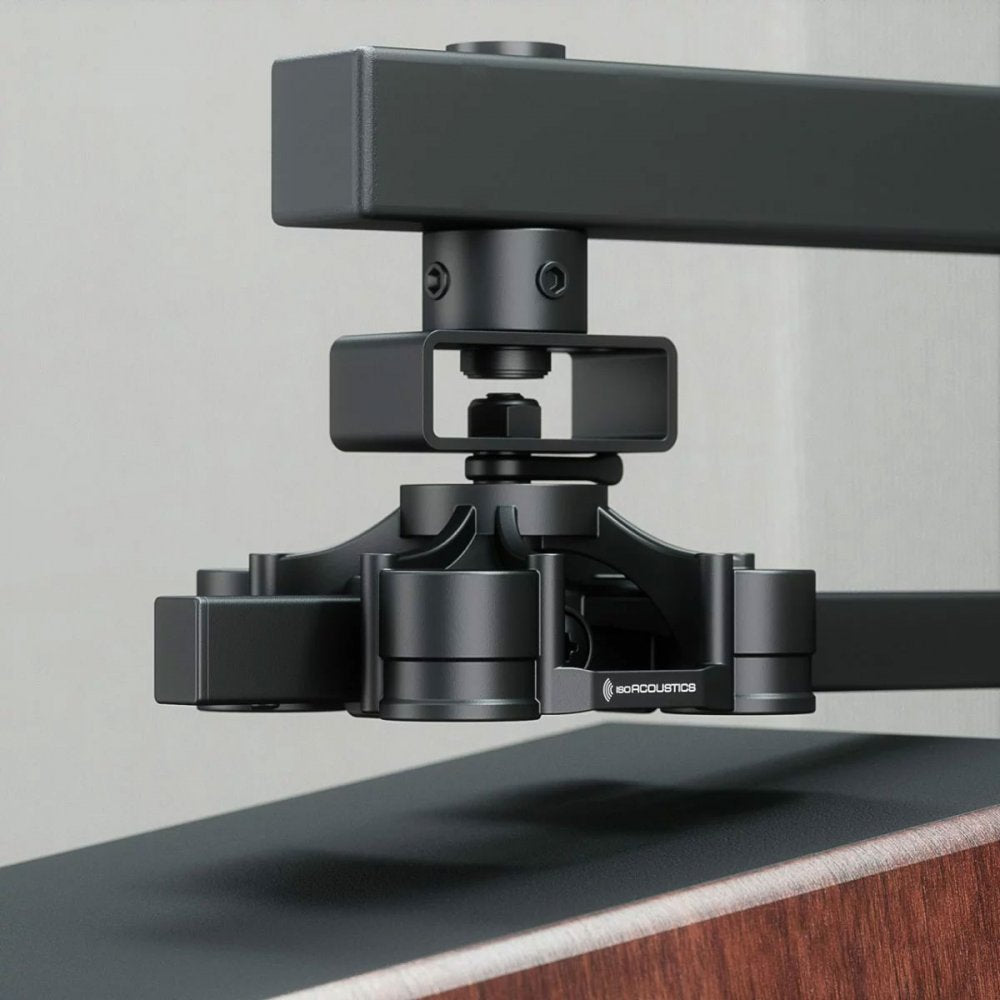 The strong and sturdy Keyhole Adapter installs on the top of the IsoAcoustics V120 isolation mount and provides quick and easy attachment to mounts from Neumann and Adam Audio.