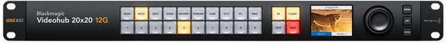 Videohub 20x20 12G Blackmagic Videohub 20x20 12G is an advanced zero latency video router that supports any combination of SD, HD and Ultra HD on the router at the same time. It has 20 12G-SDI inputs and 20 12G-SDI outputs plus reference connections in a one rack unit size. The front panel LCD lets you see video before routing and clearly displays routing labels and video standards. Routing can be performed by direct button selection and using the large spin knob control that has an electronic clutch. It also features SDI re-clocking, external Ethernet control and supports all SDI video standards up to 2160p60.